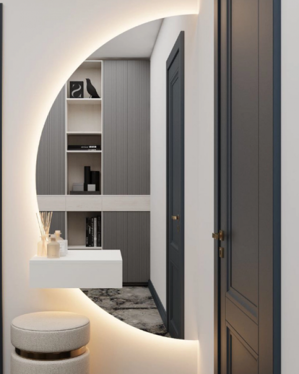 Одним из лучших решений для современного интерьера является зеркало с подсветкой, которая сделает комнату светлее и уютнее. При расположении такого зеркала в ванной комнате или в макияжной зоне, оно станет незаменимым помощником при совершении гигиенических и косметических процедур. Этот уникальный элемент декора может стать, в зависимости от Ваших пожеланий, как гармоничным дополнением к существующему интерьеру, так и ключевым его элементом. На это влияет не только размер и форма зеркального полотна, но и тип подсветки: боковая (она же интерьерная), фронтальная или их сочетание, а также цветовая температура.